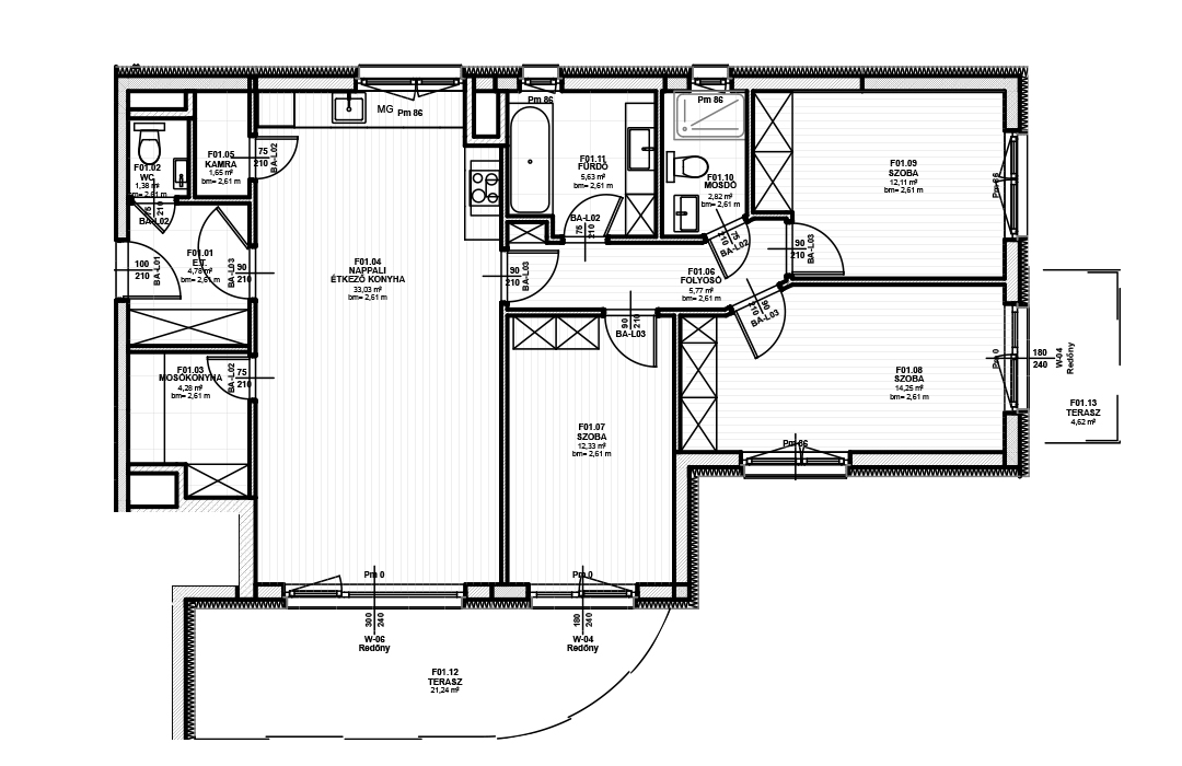 - A lakások nettó alapterületei a belső válaszfalak alatti területek és vakolat nélkül értendők.